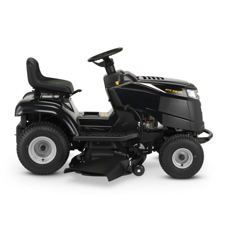 Grâce à ce tracteur de jardin à éjection latérale de 108 cm Alpina, vous pouvez entretenir rapidement et efficacement les vastes étendues de gazon.